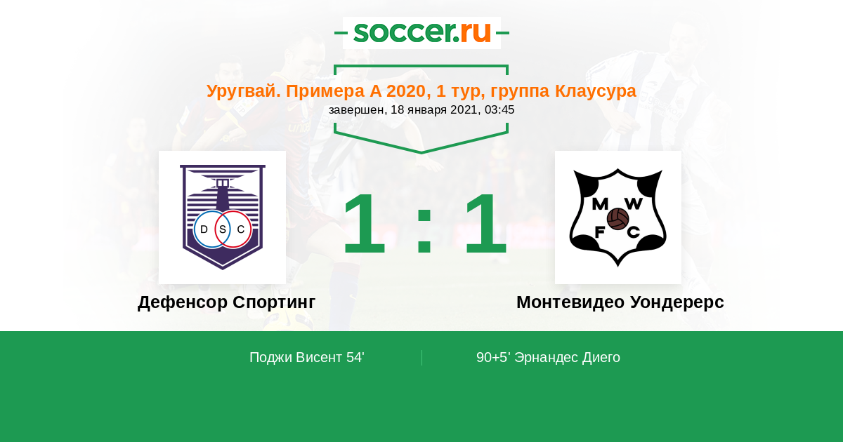 Протокол матча Дефенсор Спортинг против Монтевидео Уондерерс