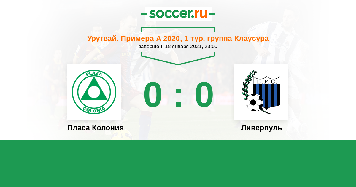 Протокол матча Пласа Колония против Ливерпуль