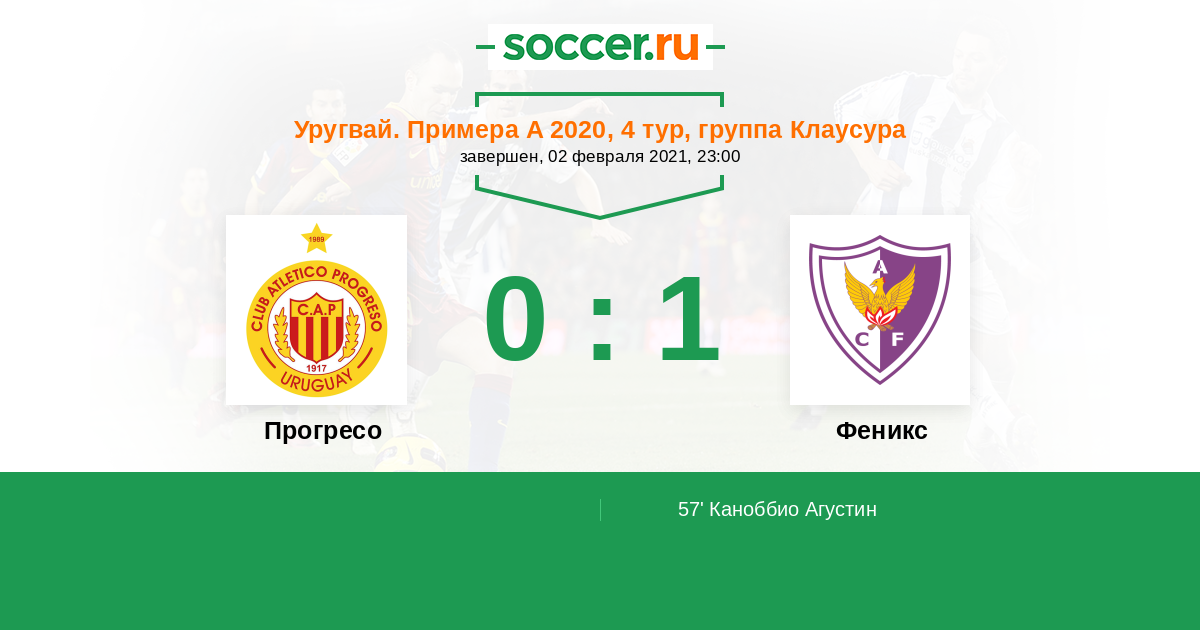 Протокол матча Прогресо против Феникс
