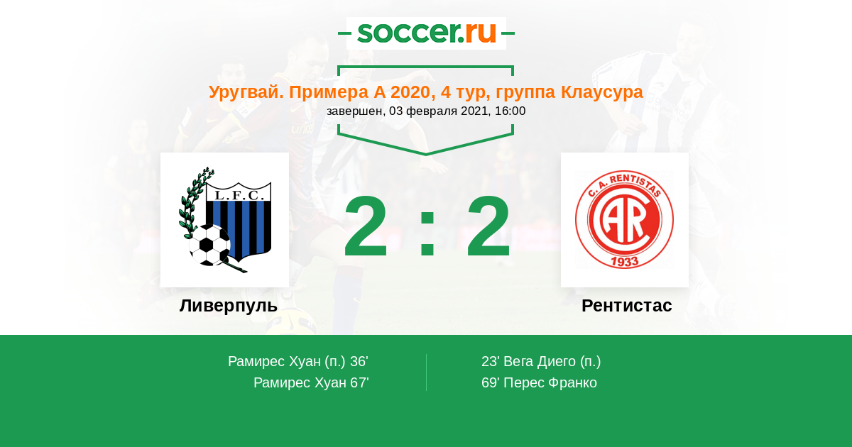 Протокол матча Ливерпуль против Рентистас