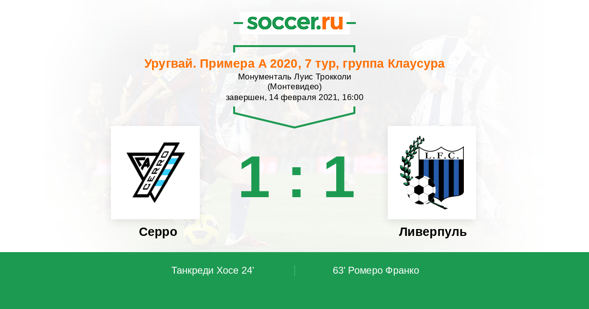 Протокол матча Серро против Ливерпуль