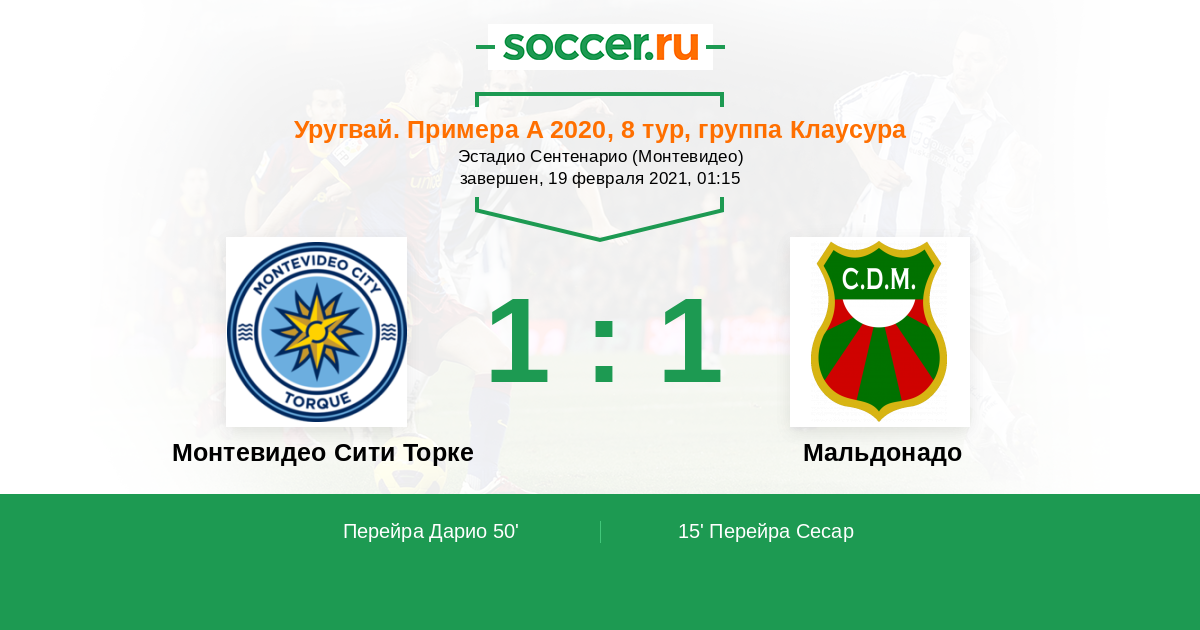 Протокол матча Монтевидео Сити Торке против Мальдонадо