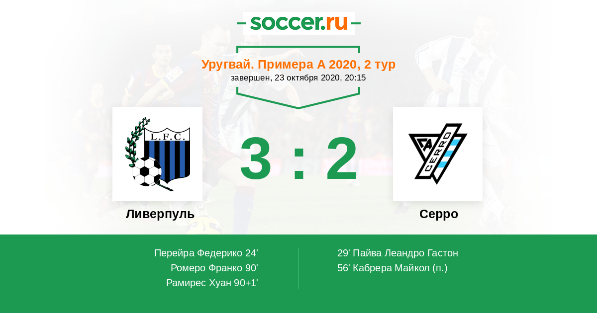 Протокол матча Ливерпуль против Серро
