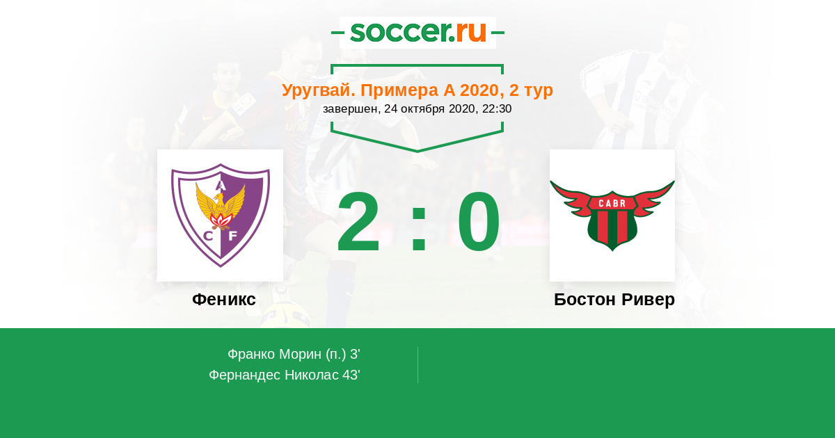Протокол матча Феникс против Бостон Ривер