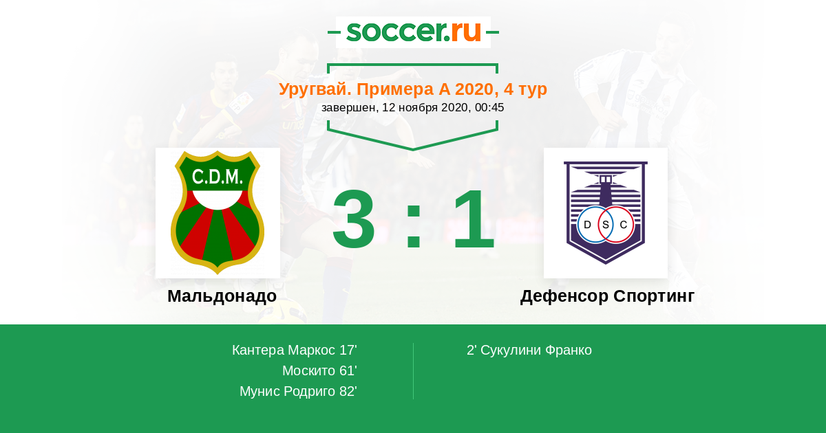 Протокол матча Мальдонадо против Дефенсор Спортинг