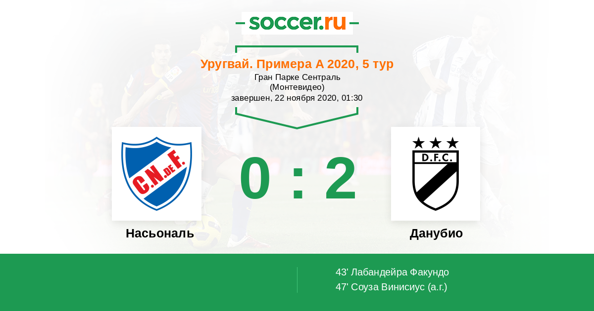 Протокол матча Насьональ против Данубио