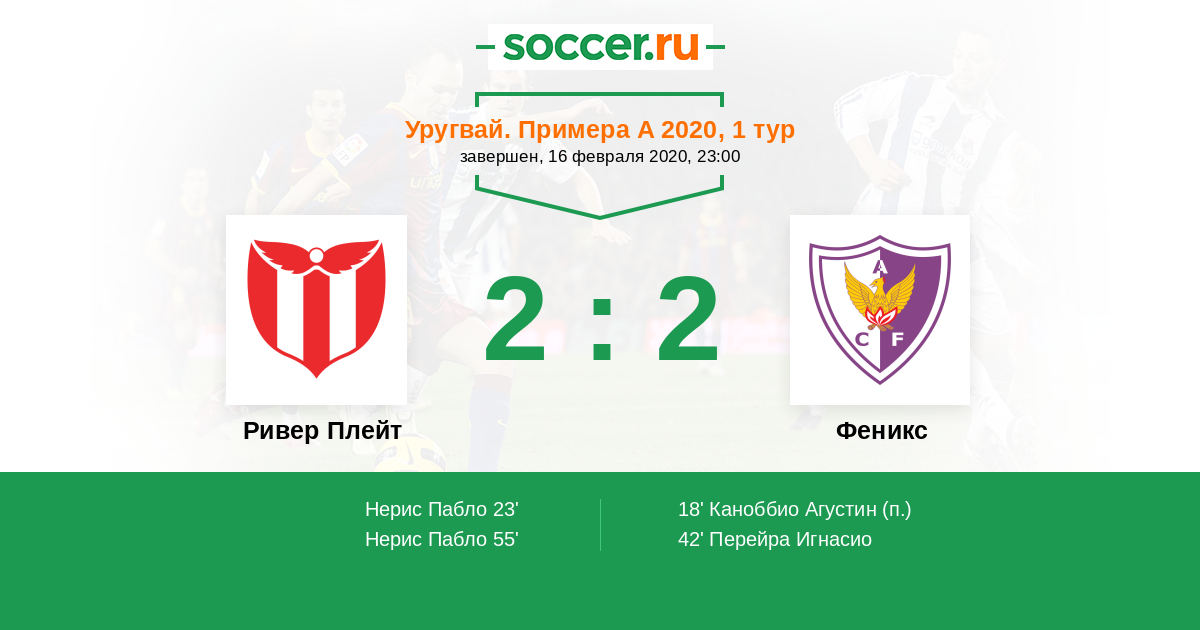 Протокол матча Ривер Плейт против Феникс