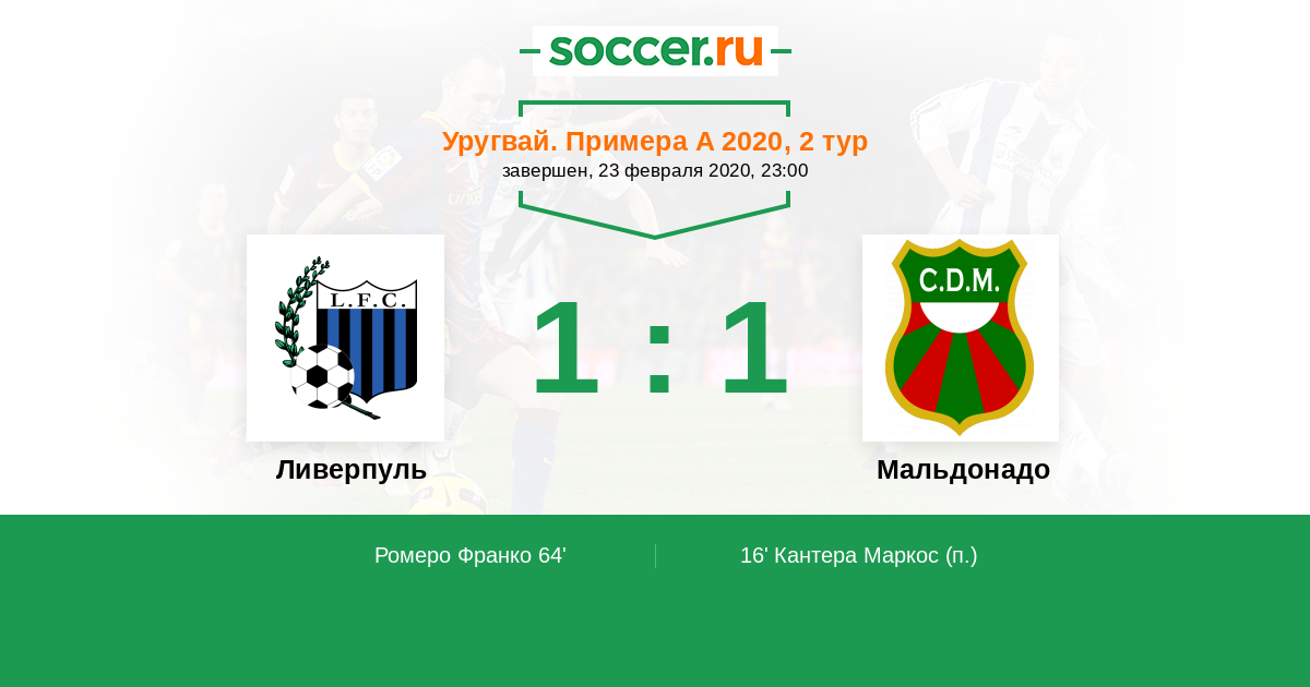 Протокол матча Ливерпуль против Мальдонадо