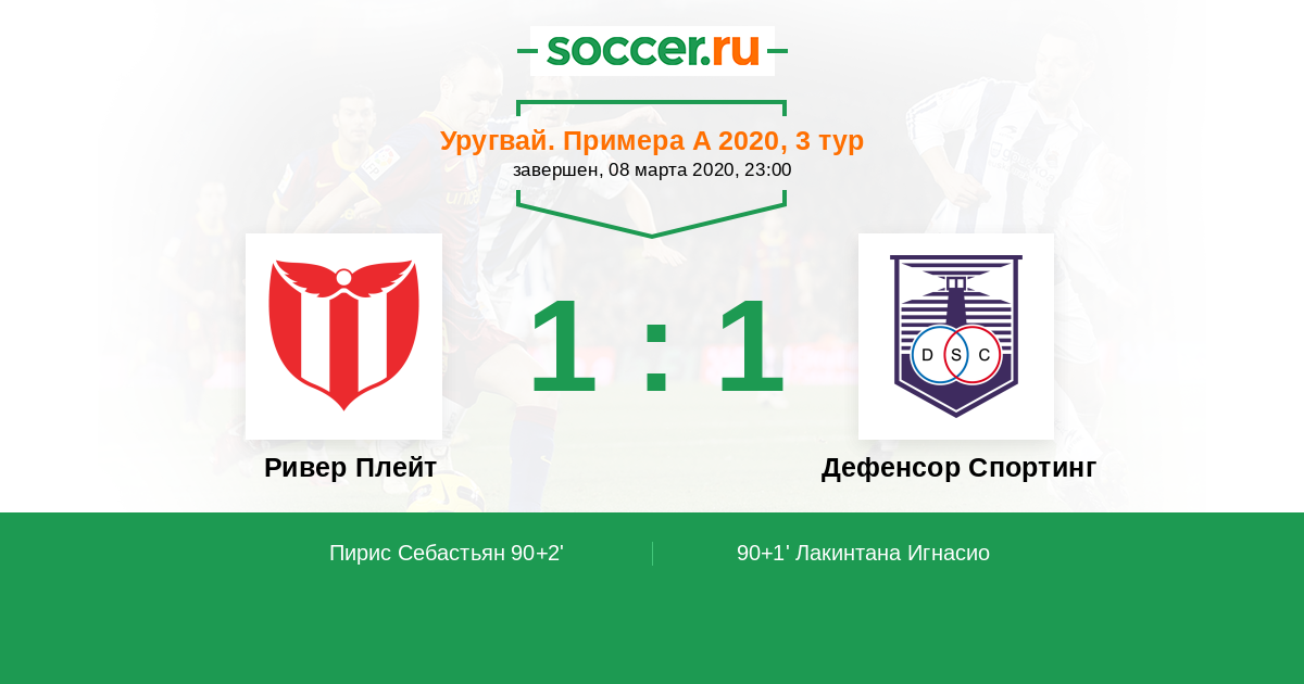 Протокол матча Ривер Плейт против Дефенсор Спортинг