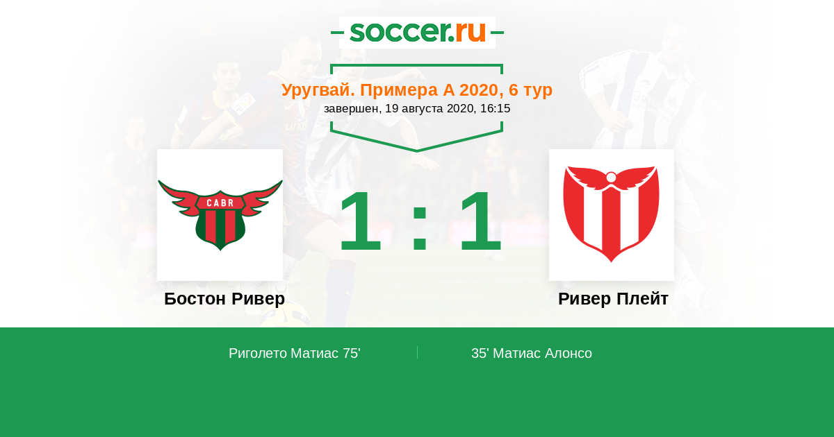 Протокол матча Бостон Ривер против Ривер Плейт