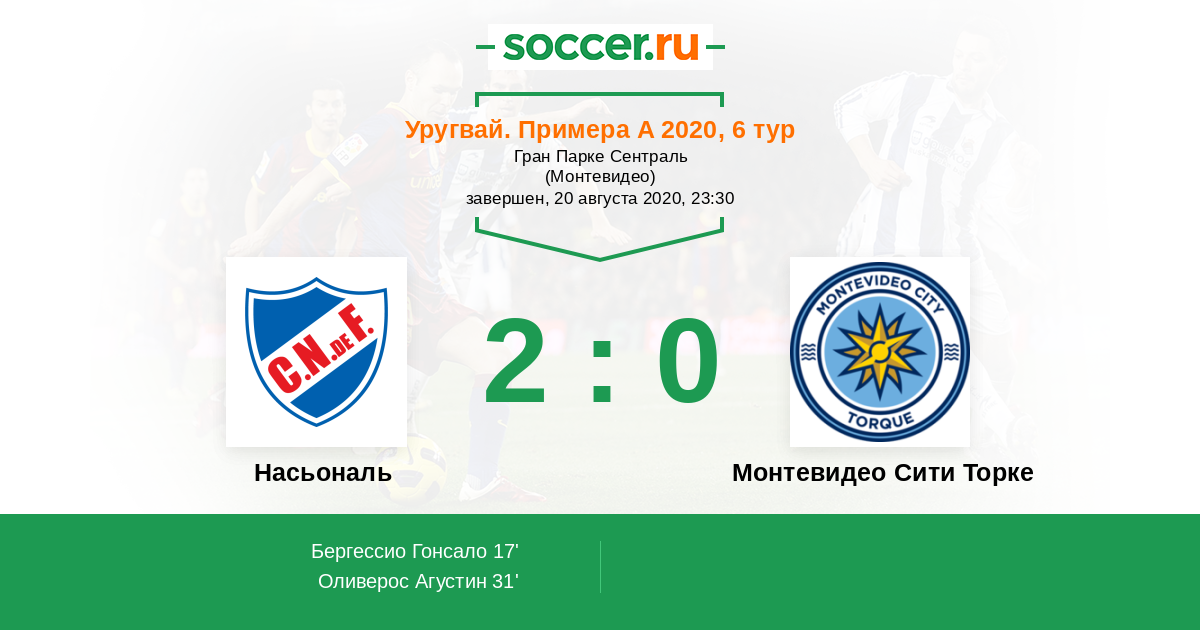 Протокол матча Насьональ против Монтевидео Сити Торке