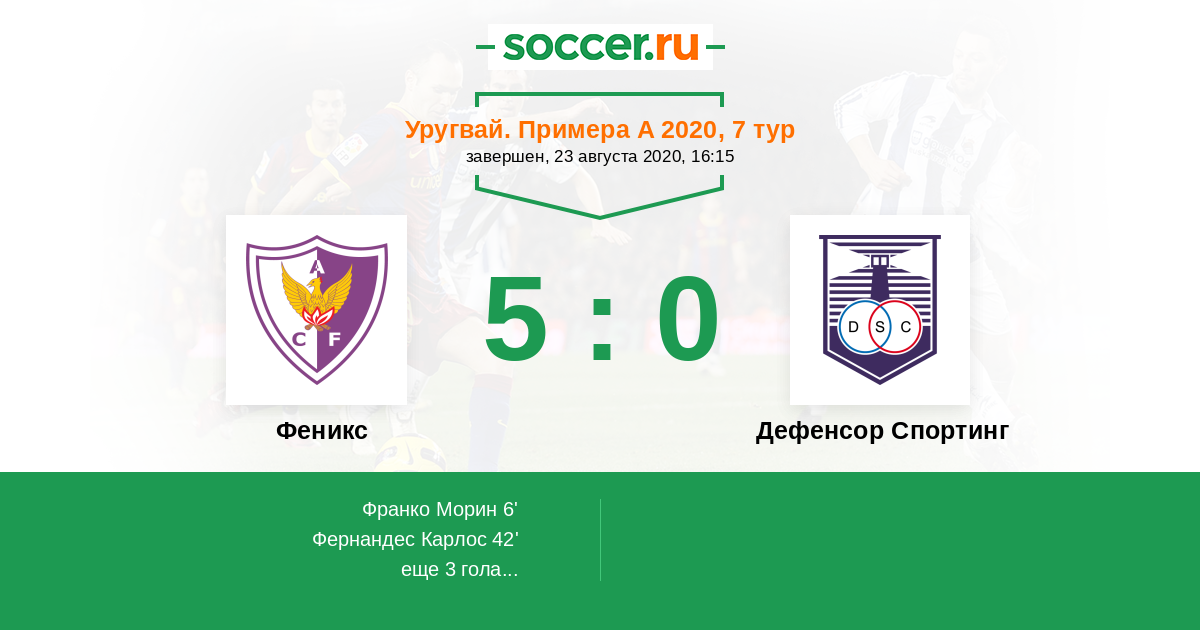 Протокол матча Феникс против Дефенсор Спортинг