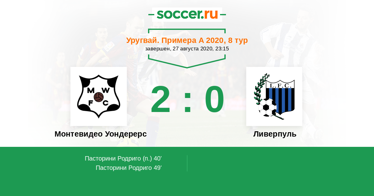 Протокол матча Монтевидео Уондерерс против Ливерпуль