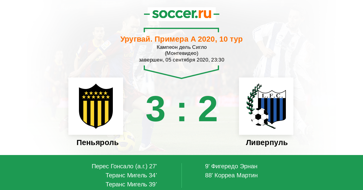 Протокол матча Пеньяроль против Ливерпуль