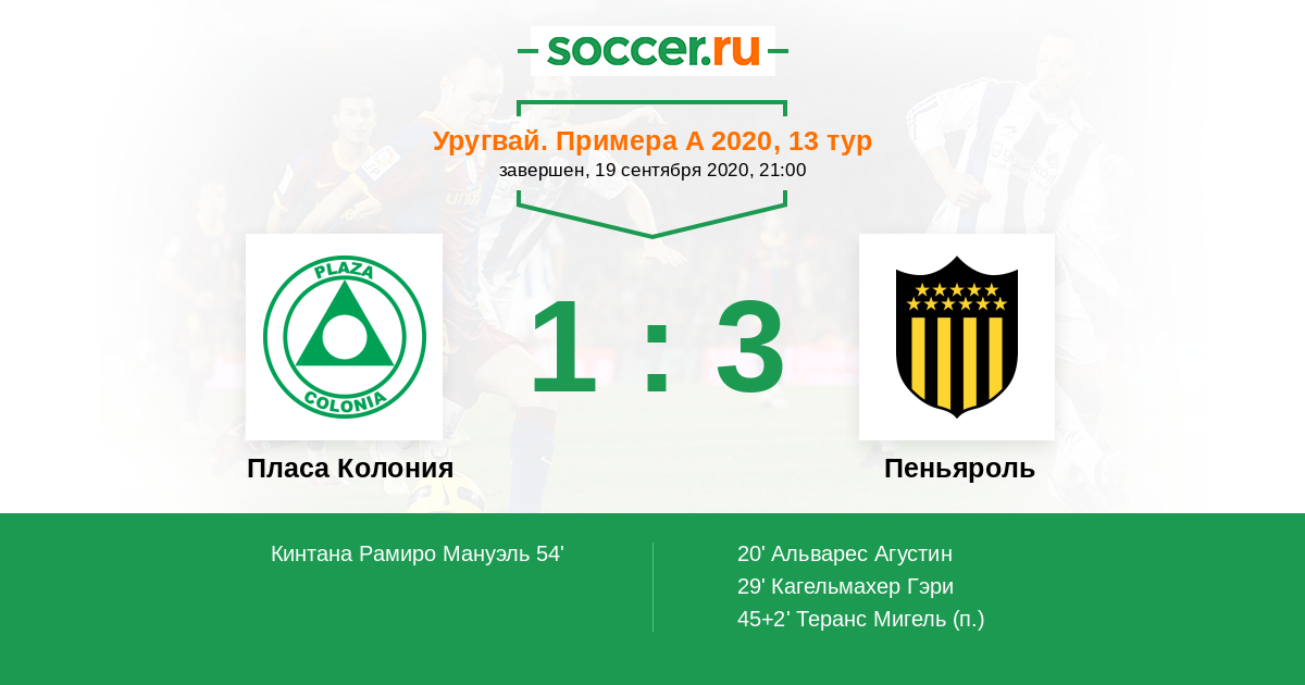 Протокол матча Пласа Колония против Пеньяроль