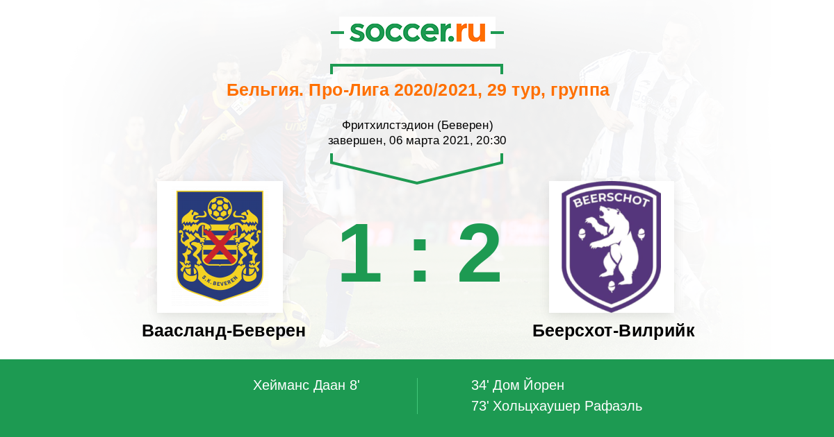 Протокол матча Ваасланд-Беверен против Беерсхот-Вилрийк