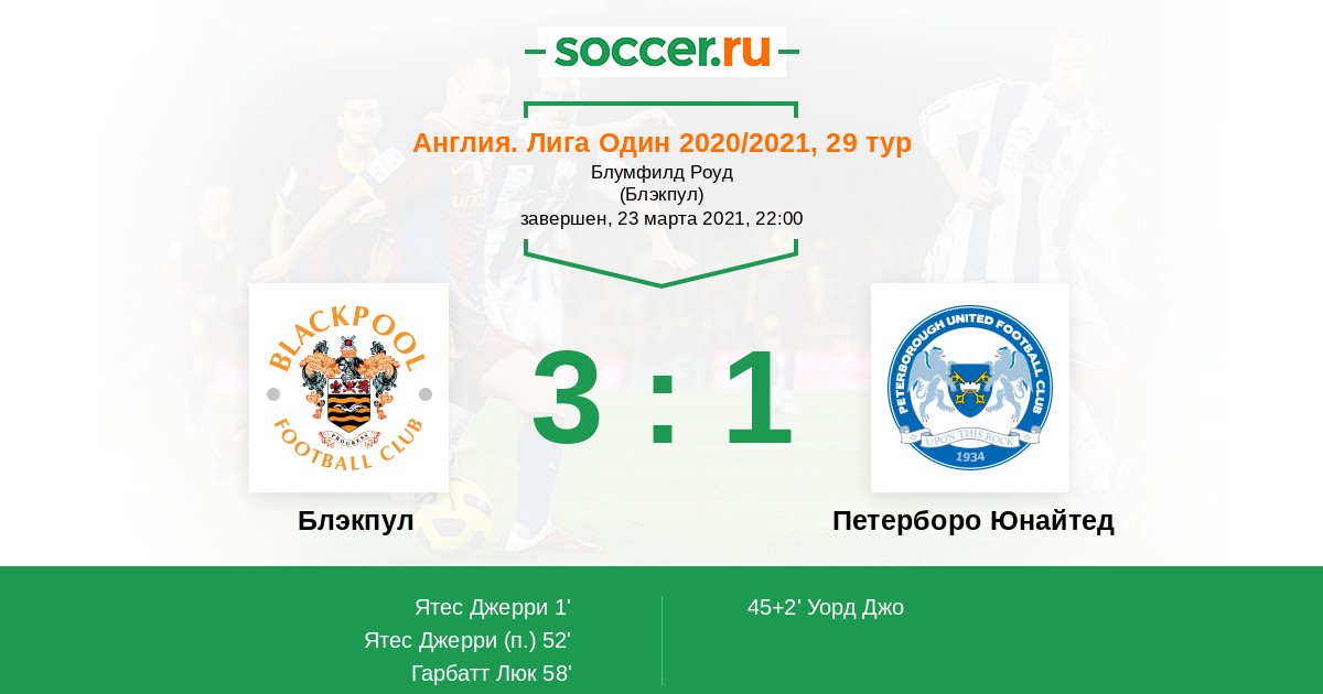 Протокол матча Блэкпул против Петерборо Юнайтед