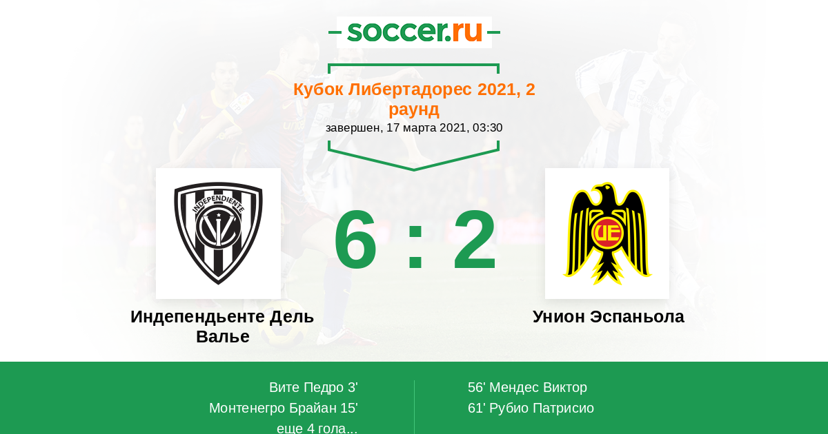 Протокол матча Индепендьенте Дель Валье против Унион Эспаньола