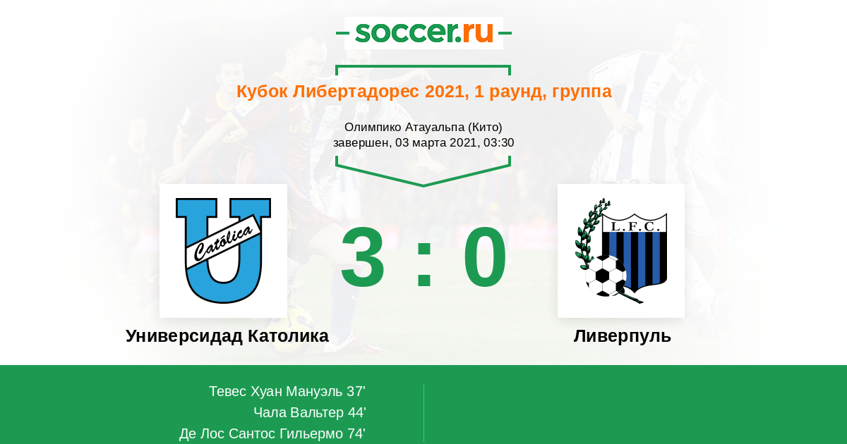 Протокол матча Универсидад Католика против Ливерпуль