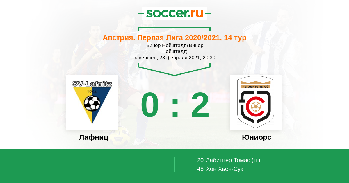 Протокол матча Лафниц против Юниорс