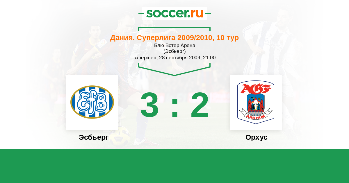 Дания. Суперлига 07.12.2009 Орхус Логотип футбольный клуб Орхус 1:1 Логотип футбольный клуб Эсбьерг Эсбьерг