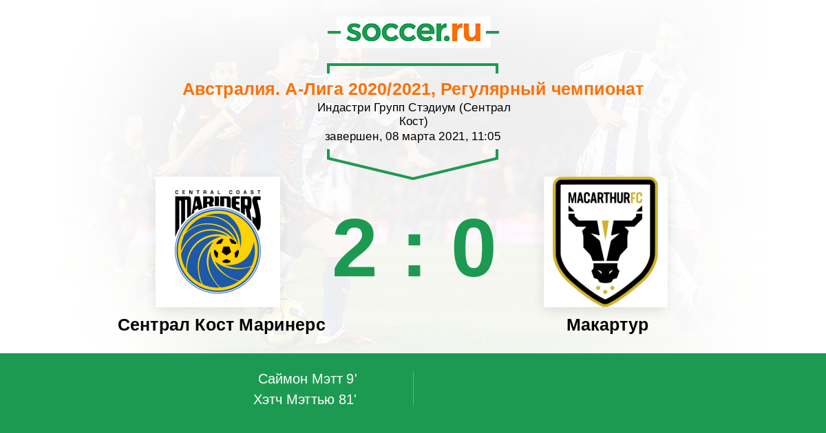 Протокол матча Сентрал Кост Маринерс против Макартур