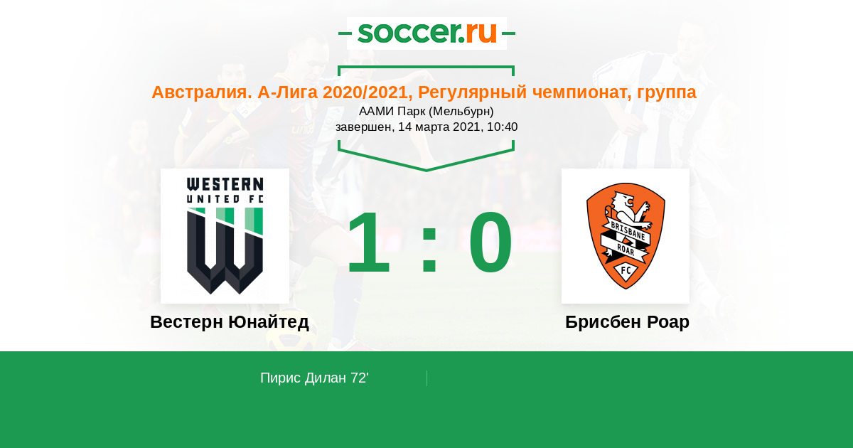 Протокол матча Вестерн Юнайтед против Брисбен Роар