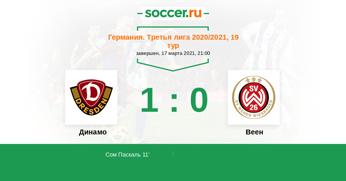11' (1:0) Сом Паскаль (9) (Мершель Хайнц (8))