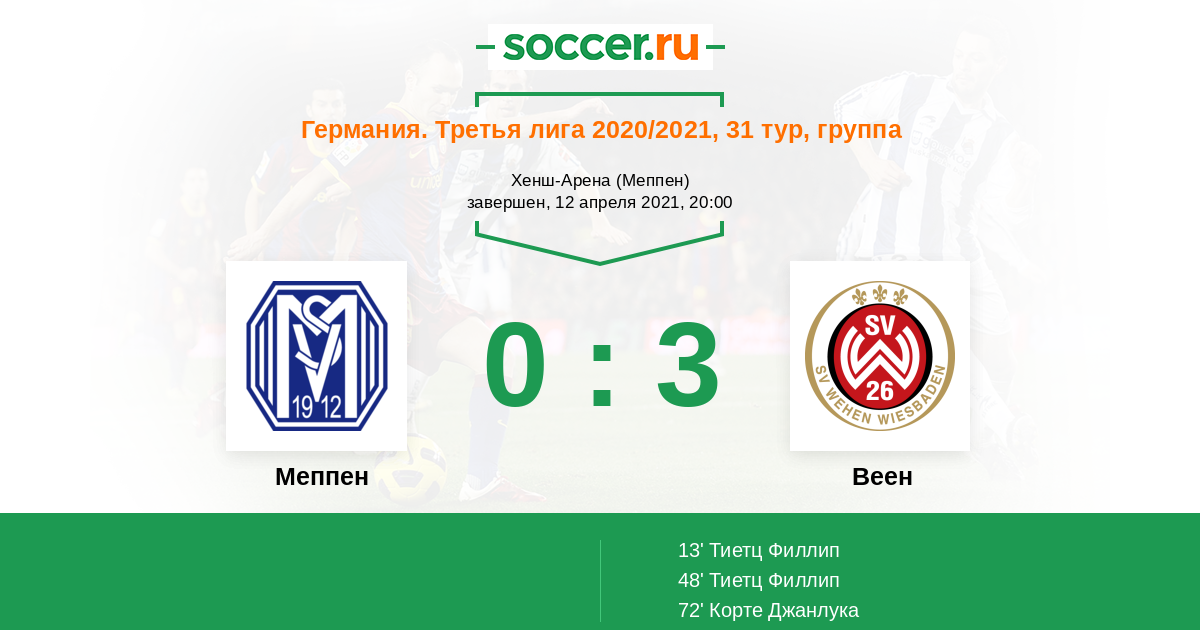Протокол матча Меппен против Веен