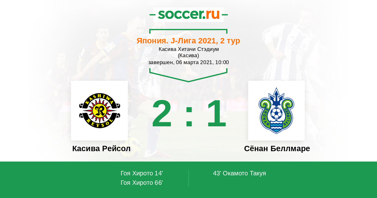Протокол матча Касива Рейсол против Сёнан Беллмаре