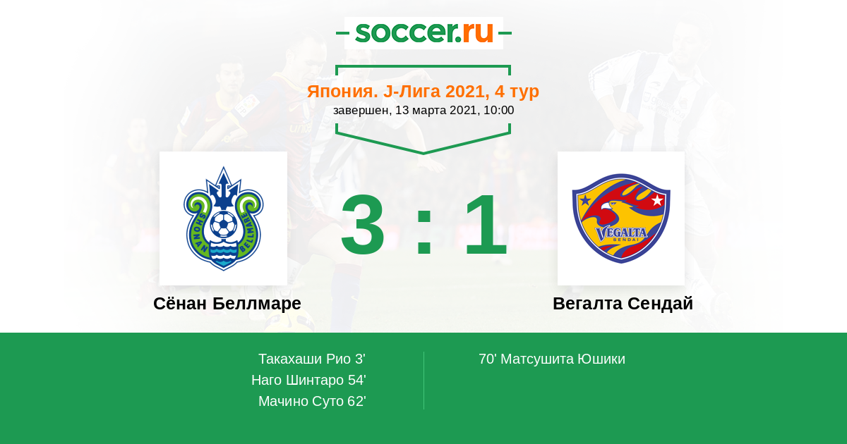 Протокол матча Сёнан Беллмаре против Вегалта Сендай