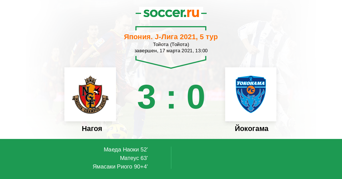 Протокол матча Нагоя против Йокогама