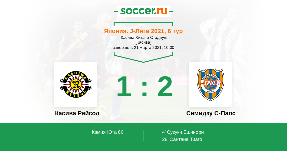 Протокол матча Касива Рейсол против Симидзу С-Палс