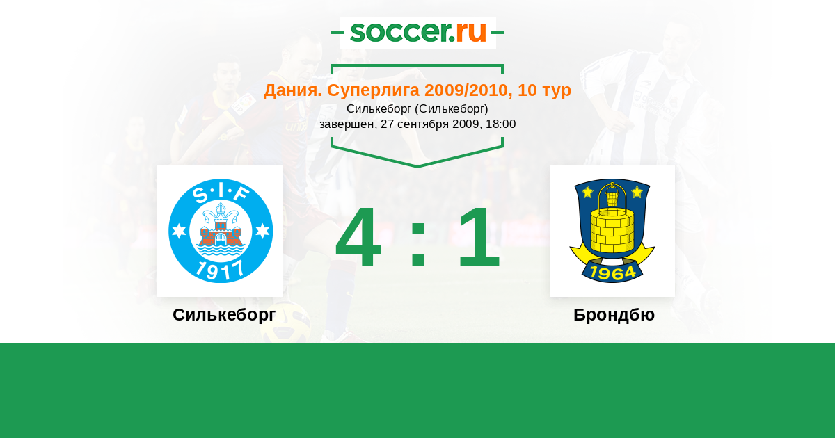 Дания. Суперлига 26.09.2010 Брондбю Логотип футбольный клуб Брондбю (Брённбю) 0:2 Логотип футбольный клуб Силькеборг Силькеборг