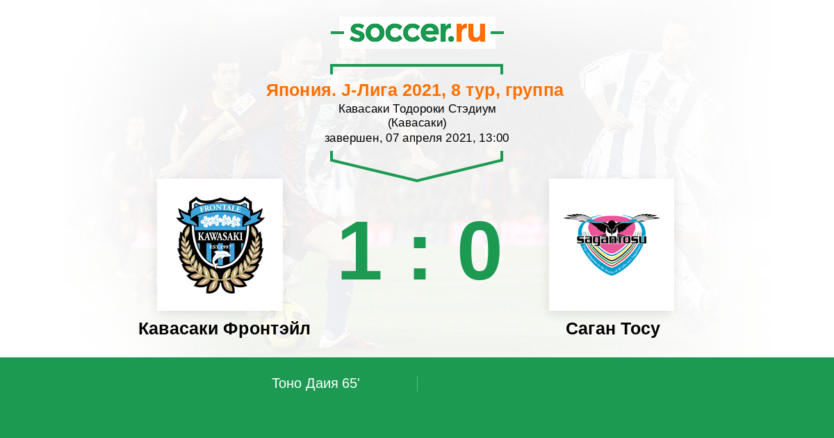 Протокол матча Кавасаки Фронтэйл против Саган Тосу