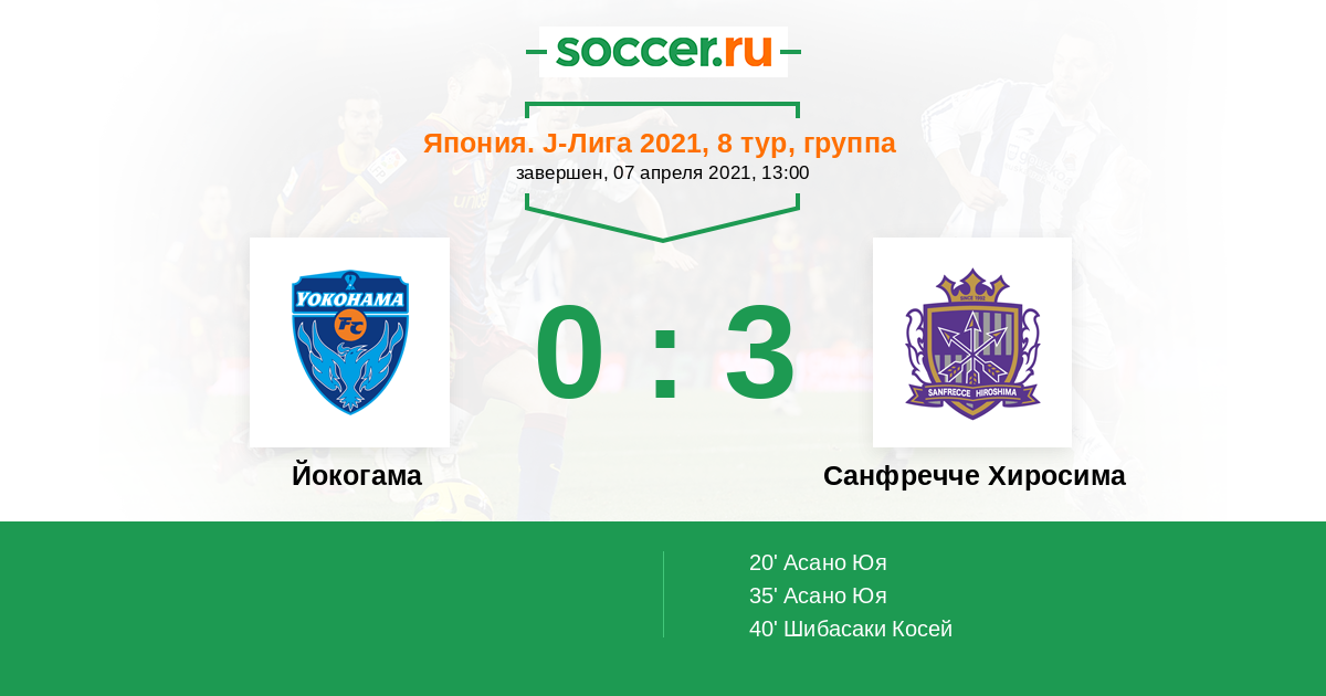 Протокол матча Йокогама против Санфречче Хиросима