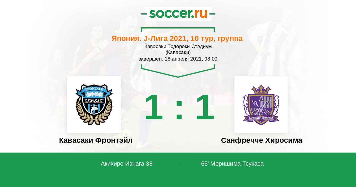 Протокол матча Кавасаки Фронтэйл против Санфречче Хиросима