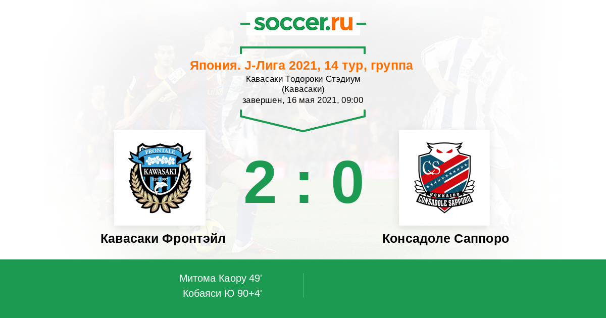 Протокол матча Кавасаки Фронтэйл против Консадоле Саппоро