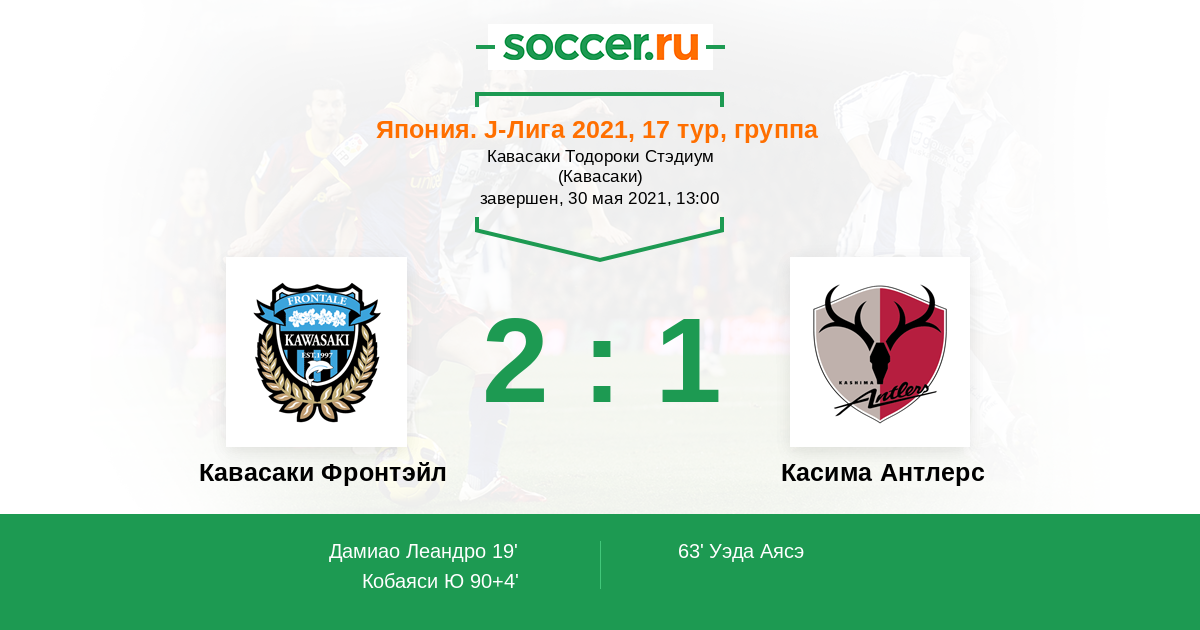 Протокол матча Кавасаки Фронтэйл против Касима Антлерс