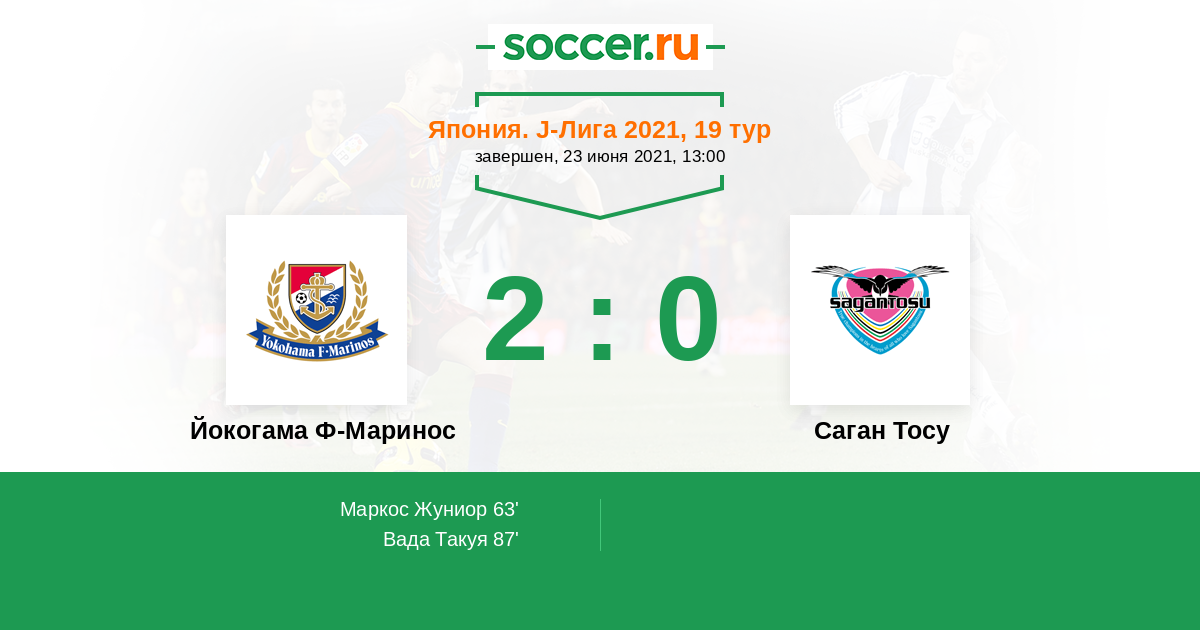Протокол матча Йокогама Ф-Маринос против Саган Тосу