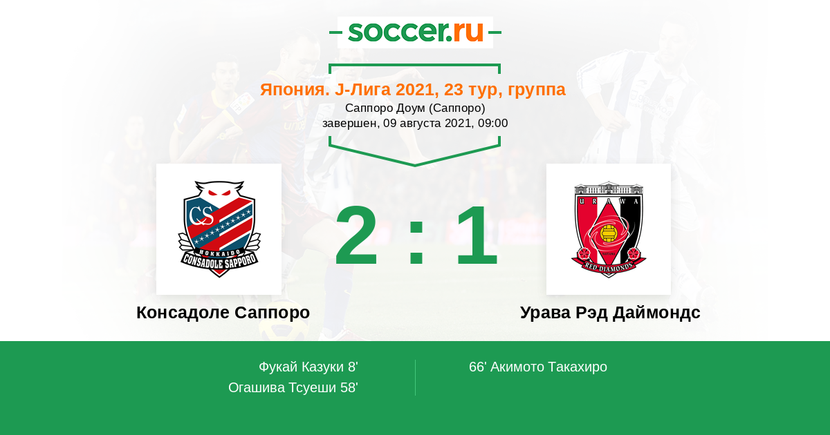 Протокол матча Консадоле Саппоро против Урава Рэд Даймондс