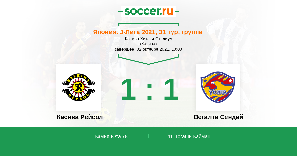 Протокол матча Касива Рейсол против Вегалта Сендай