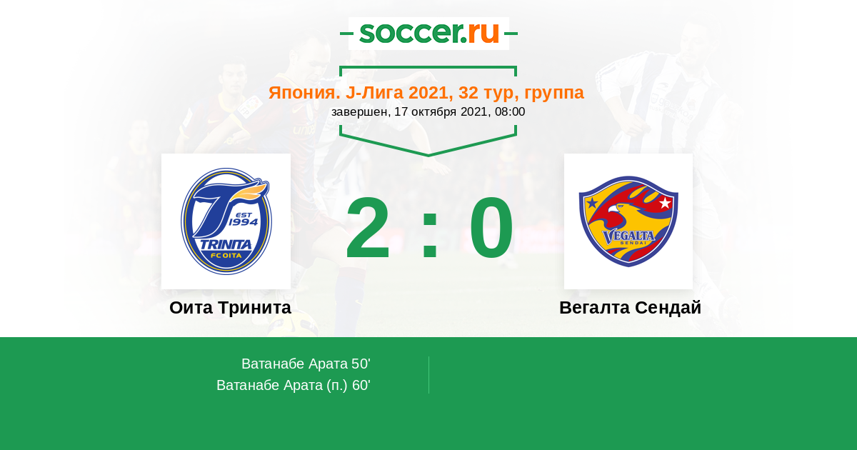 Протокол матча Оита Тринита против Вегалта Сендай