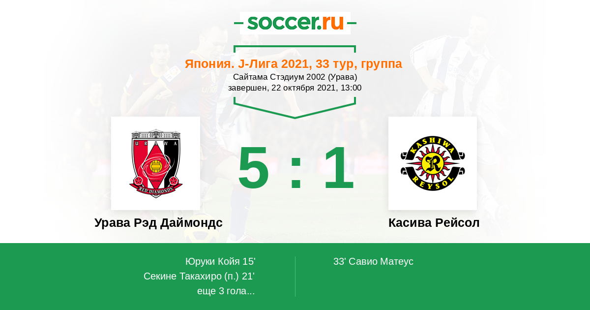 Протокол матча Урава Рэд Даймондс против Касива Рейсол