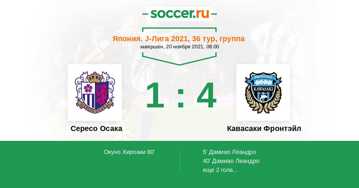 40' (0:2) Дамиао Леандро (9) (Акихиро Иэнага (41))