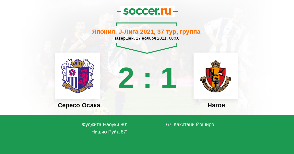 Протокол матча Сересо Осака против Нагоя