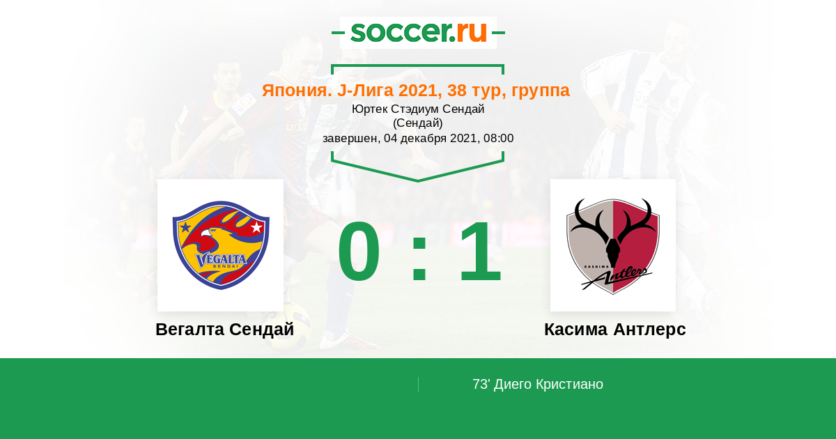 Протокол матча Вегалта Сендай против Касима Антлерс
