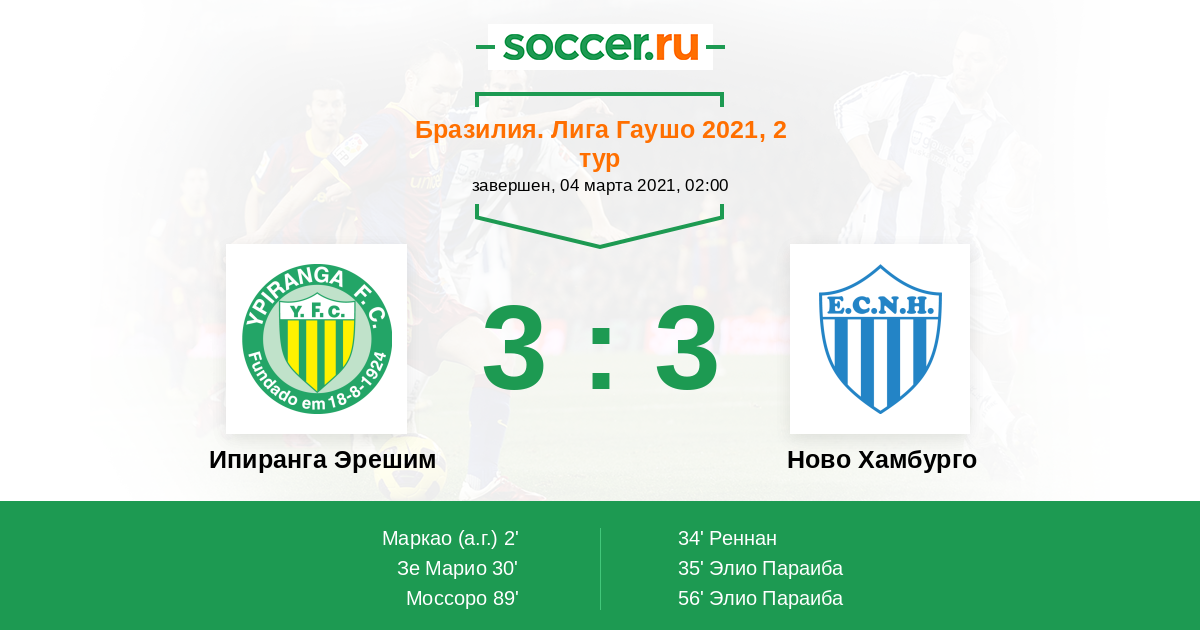 Протокол матча Ипиранга Эрешим против Ново Хамбурго