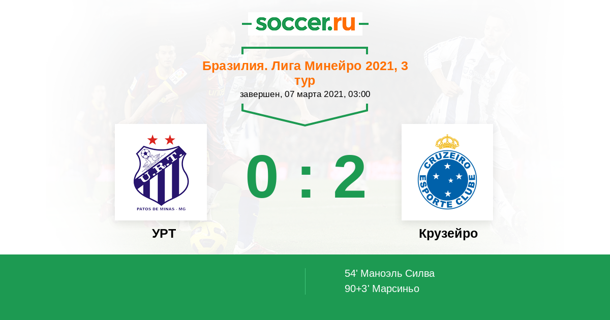 Протокол матча УРТ против Крузейро