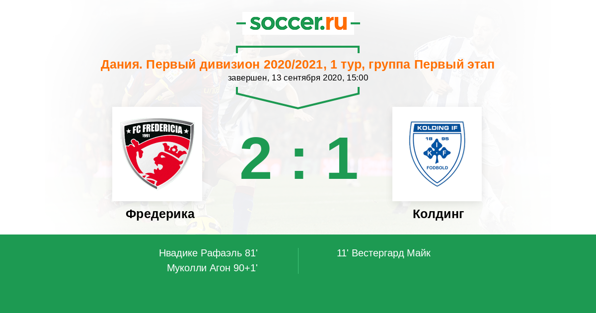 Протокол матча Фредерика против Колдинг